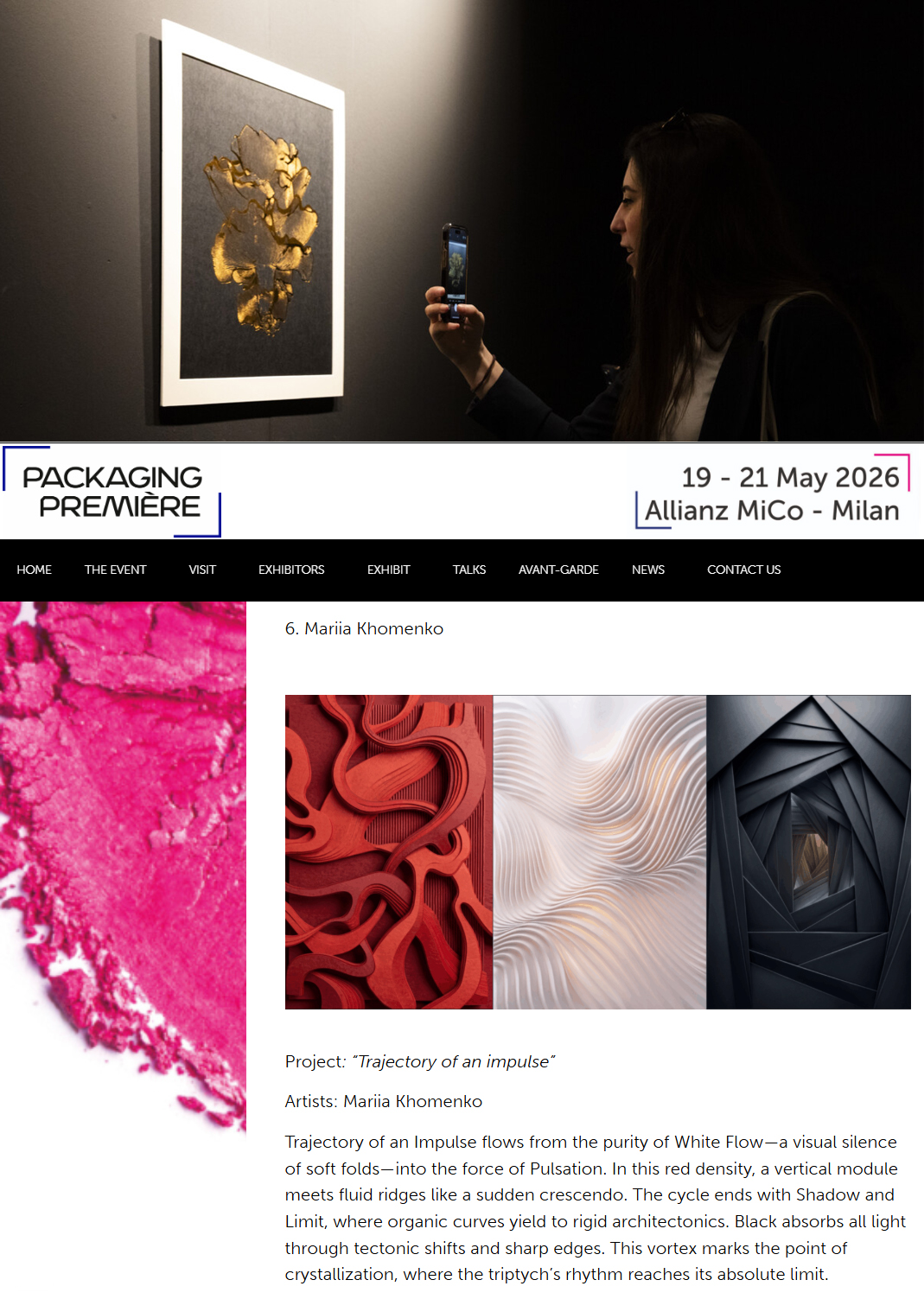 Міжнародна подія Packaging Première 2026 у Мілані цього року вражає концепцією Folded Realities, де мистецтво та дизайн поєднуються у новому, глибокому діалозі. Центральним простором стала Art Gallery — експериментальна платформа, що досліджує форму, матеріал і жест через сучасні художні практики.