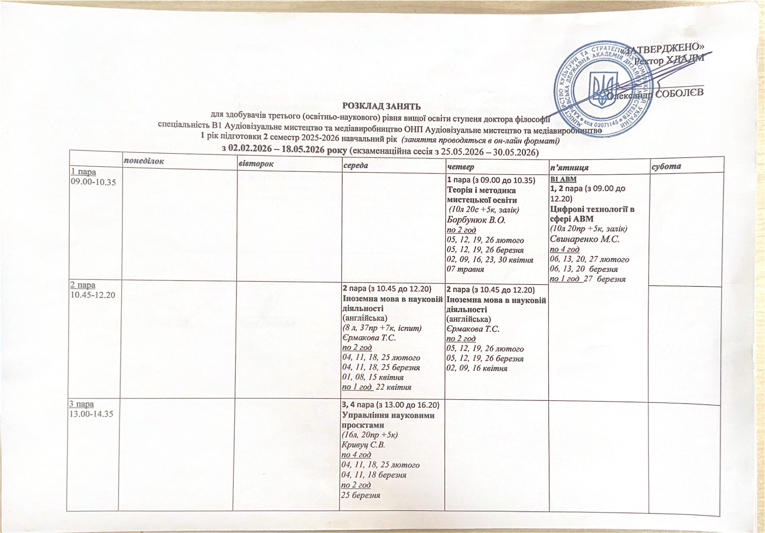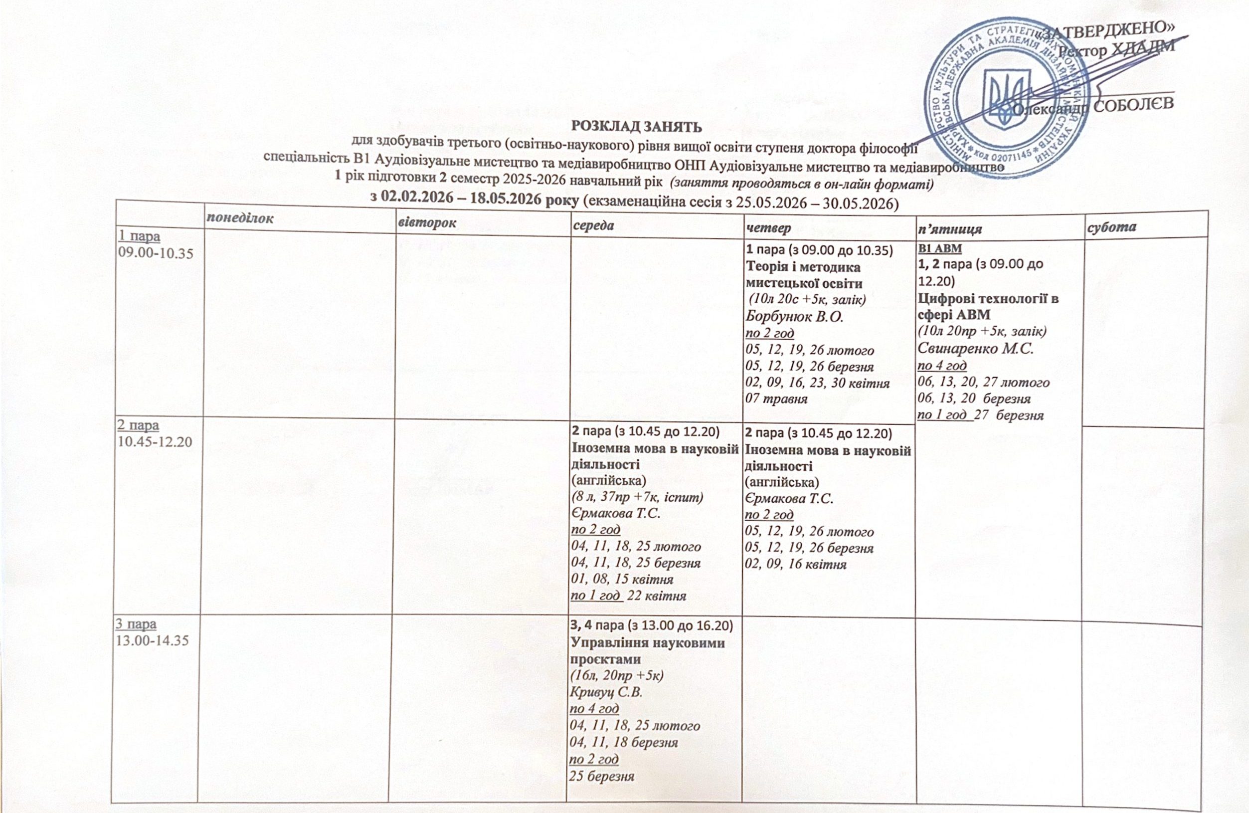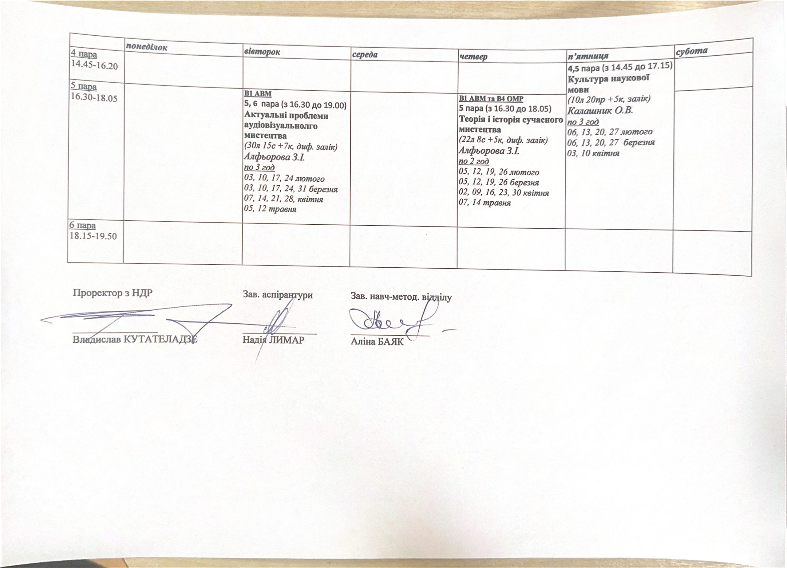 Розклад занять аспірантів