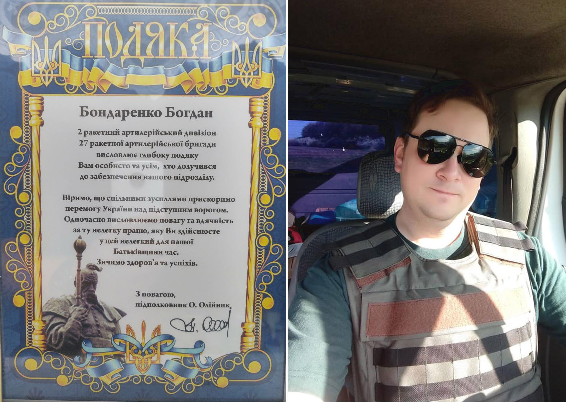 Вітаємо доцента Богдана Бондаренка з отриманням Подяки від 2 ракетного артилерійського дивізіону 27 ракетної артилерійської бригади за забезпечення підрозділу.