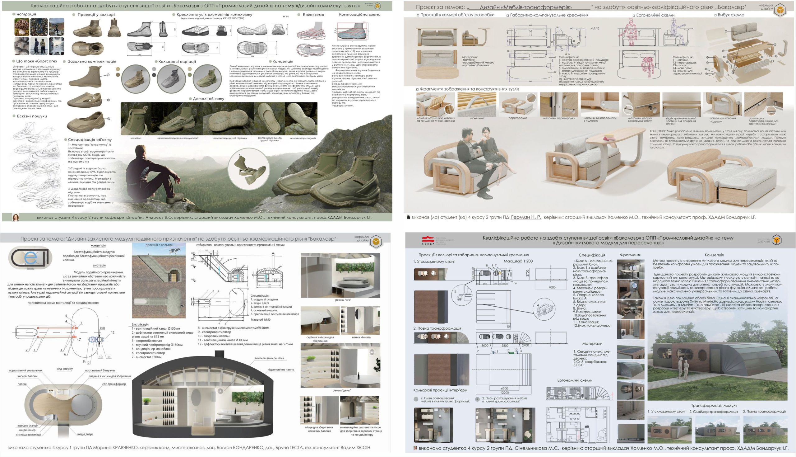 Кравченко Марина. Дизайн захисного модуля подвійного призначення. Керівники: доц. Богдан Бондаренко, assoc. prof. Теста Б. Технічний консультант доц. Хєсін В.О. ОПП «Промисловий дизайн».