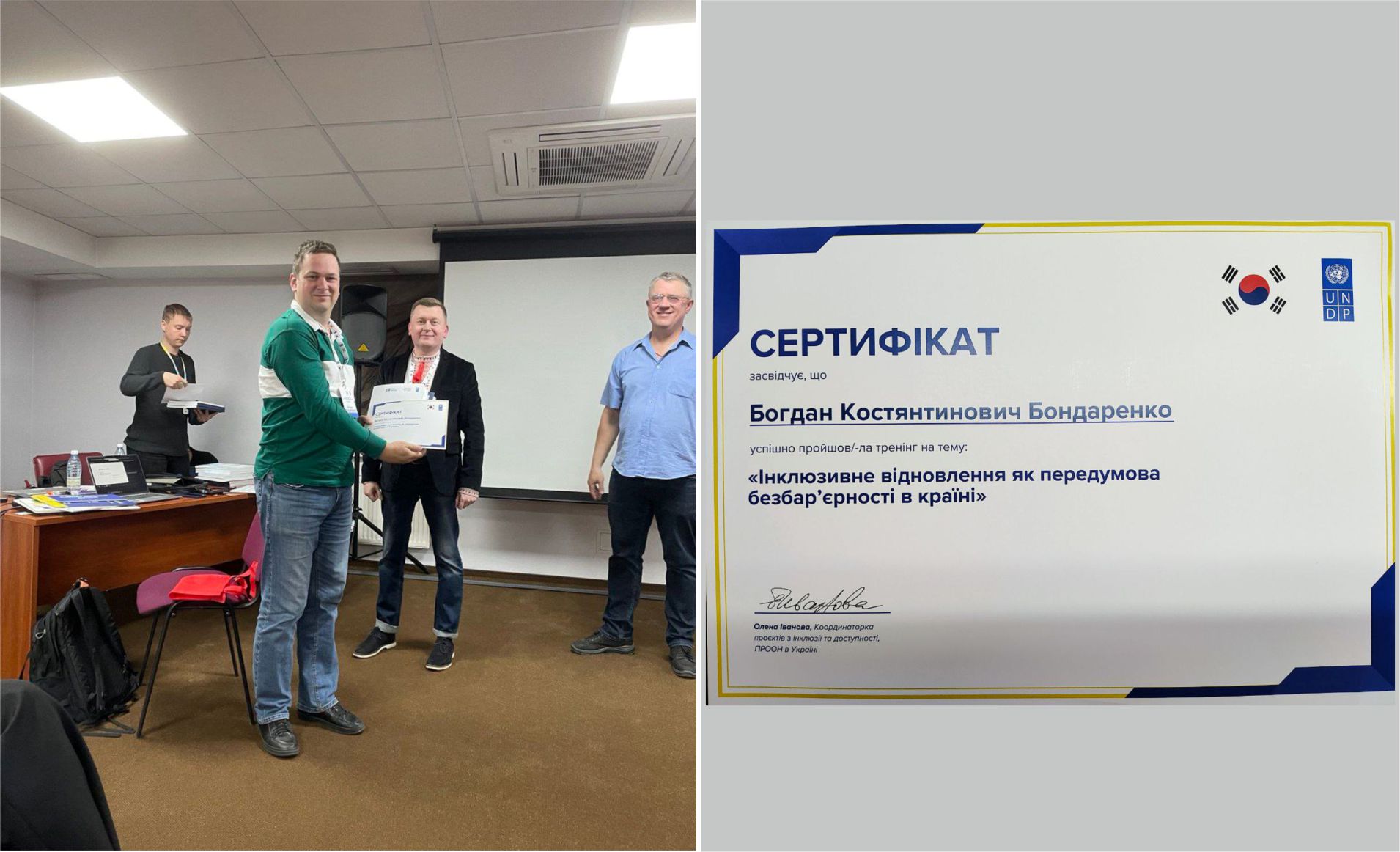 Вітаємо доц. Бондаренка Богдана з успішним проходженням тренінгу “Інклюзивне відновлення як передумова безбар’єрності в країні”.