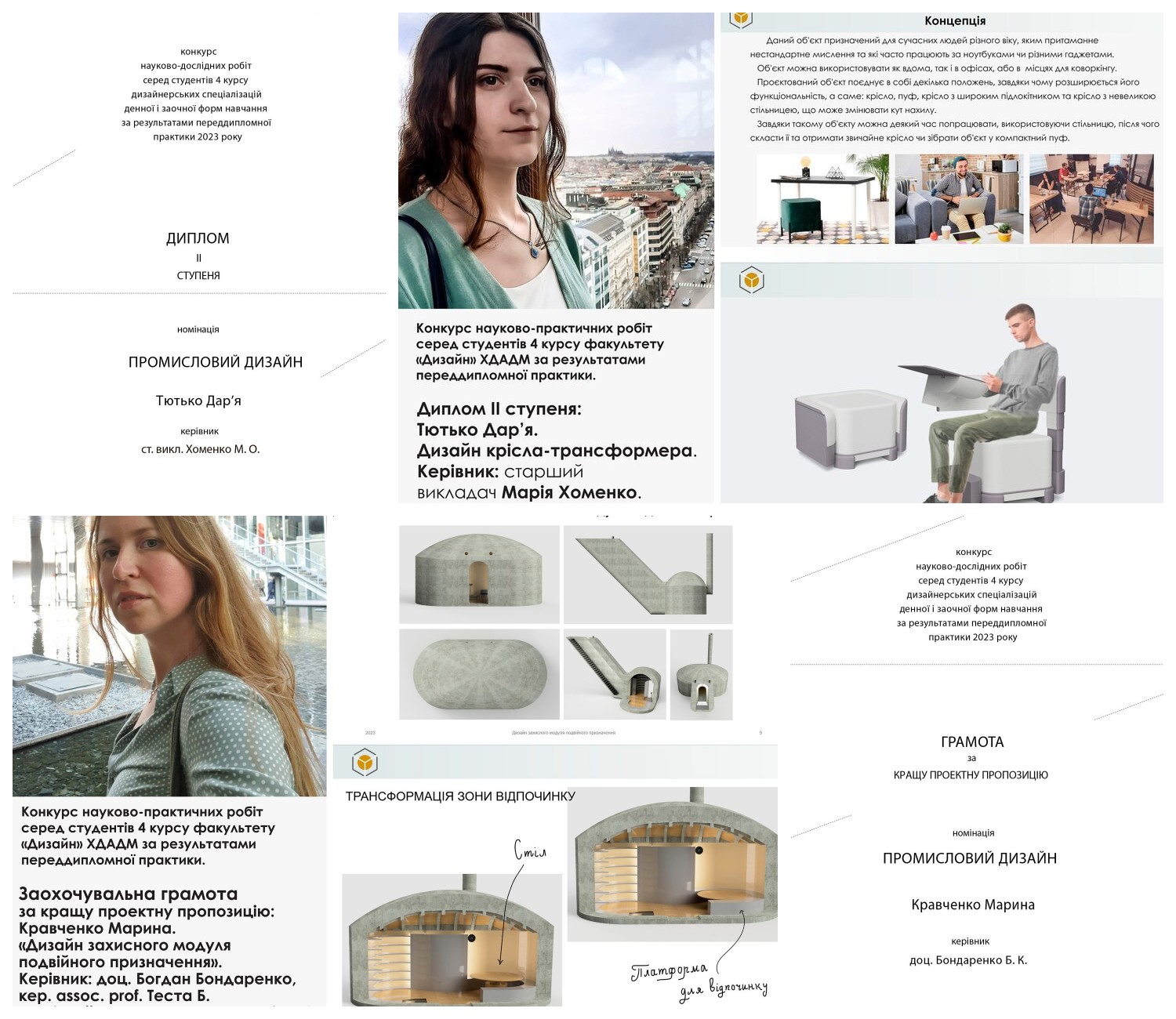 Диплом ІІ ступеня: Тютько Дар’я. Дизайн крісла-трансформера. Керівник: старший викладач Марія Хоменко. ОПП «Промисловий дизайн».