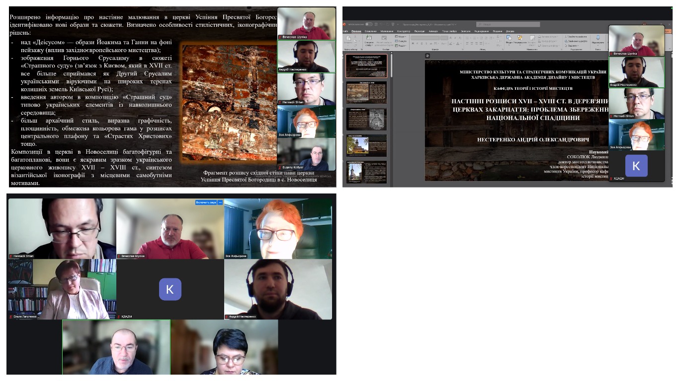 2 липня 2025 року викладач кафедри рисунка Нестеренко Андрій Олександрович успішно захистив дисертацію «Настінні розписи ХVІІ ‒ ХVІІІ ст. в дерев’яних церквах Закарпаття: проблема збереження національної спадщини» за спеціальністю 023 Образотворче мистецтво, декоративне мистецтво, реставрація та здобув ступінь доктора філософії (Ph.D). Науковий керівник: Соколюк Людмила Данилівна, доктор мистецтвознавства, академік Національної Академії Мистецтв України, професор.