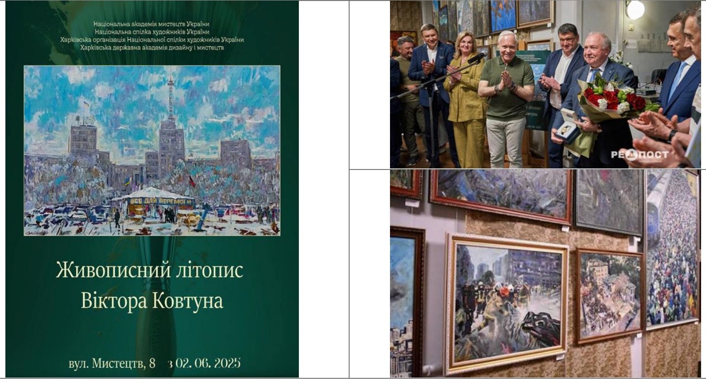 • 2 червня 2025 року в стінах ХАРКІВСЬКОЇ ДЕРЖАВНОЇ АКАДЕМІЇ ДИЗАЙНУ І МИСТЕЦТВ відбулося урочисте відкриття мистецького проєкту «Живописний літопис», присвяченого 40-річчю педагогічної діяльності Народного художника України, лауреата Національної премії ім. Т.Г. Шевченка, почесного громадянина Харкова, почесного академіка НАМ України, голови ХО НСХУ, професора Віктора Івановича КОВТУНА. Експозиція налічує понад 100 живописних полотен, які є тільки малою частиною великого творчого доробку Майстра.