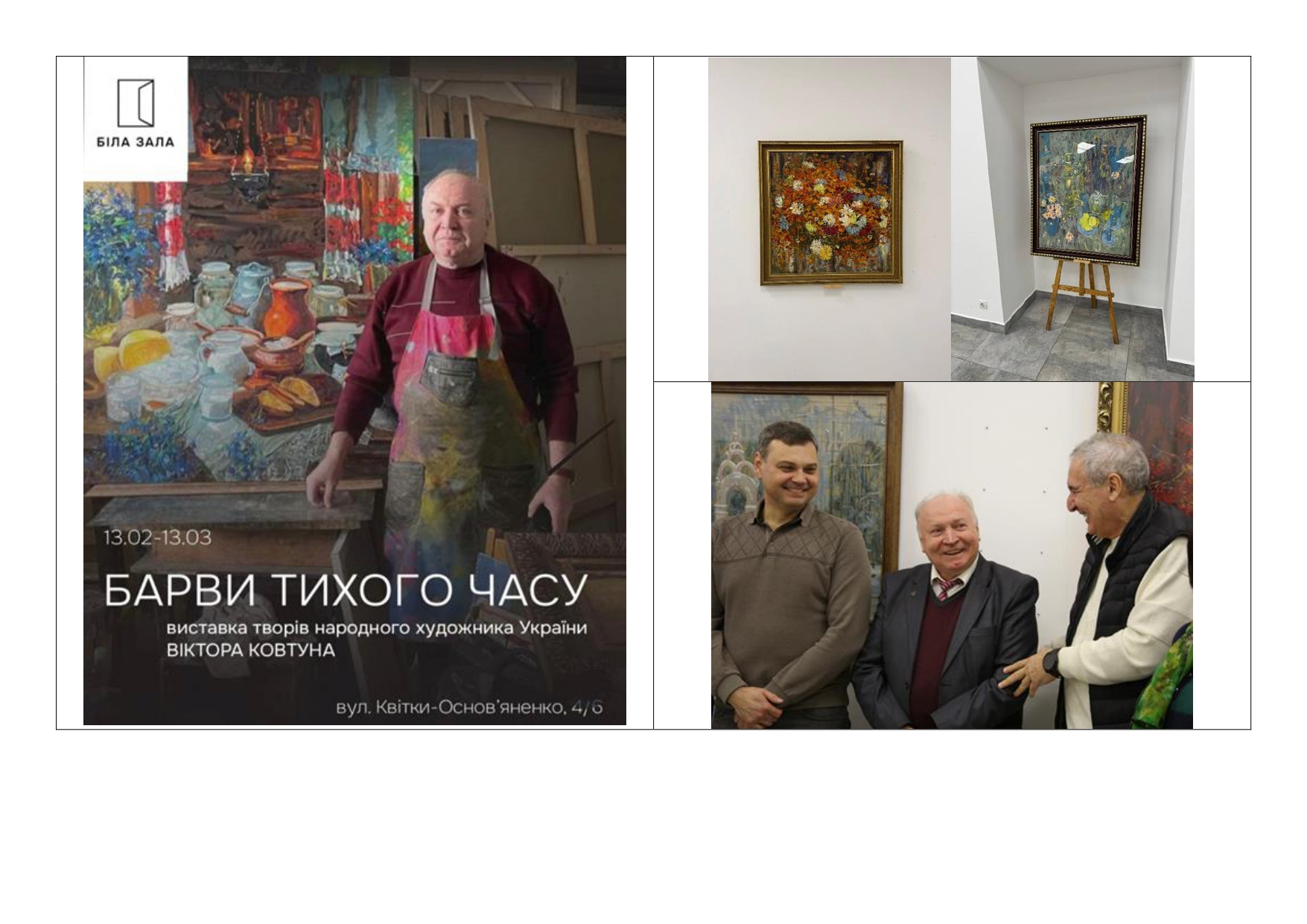 • 13 лютого 2026 року відкрилась виставка «Барви тихого часу» народного художника України Віктора Ковтуна, професора кафедри живопису.