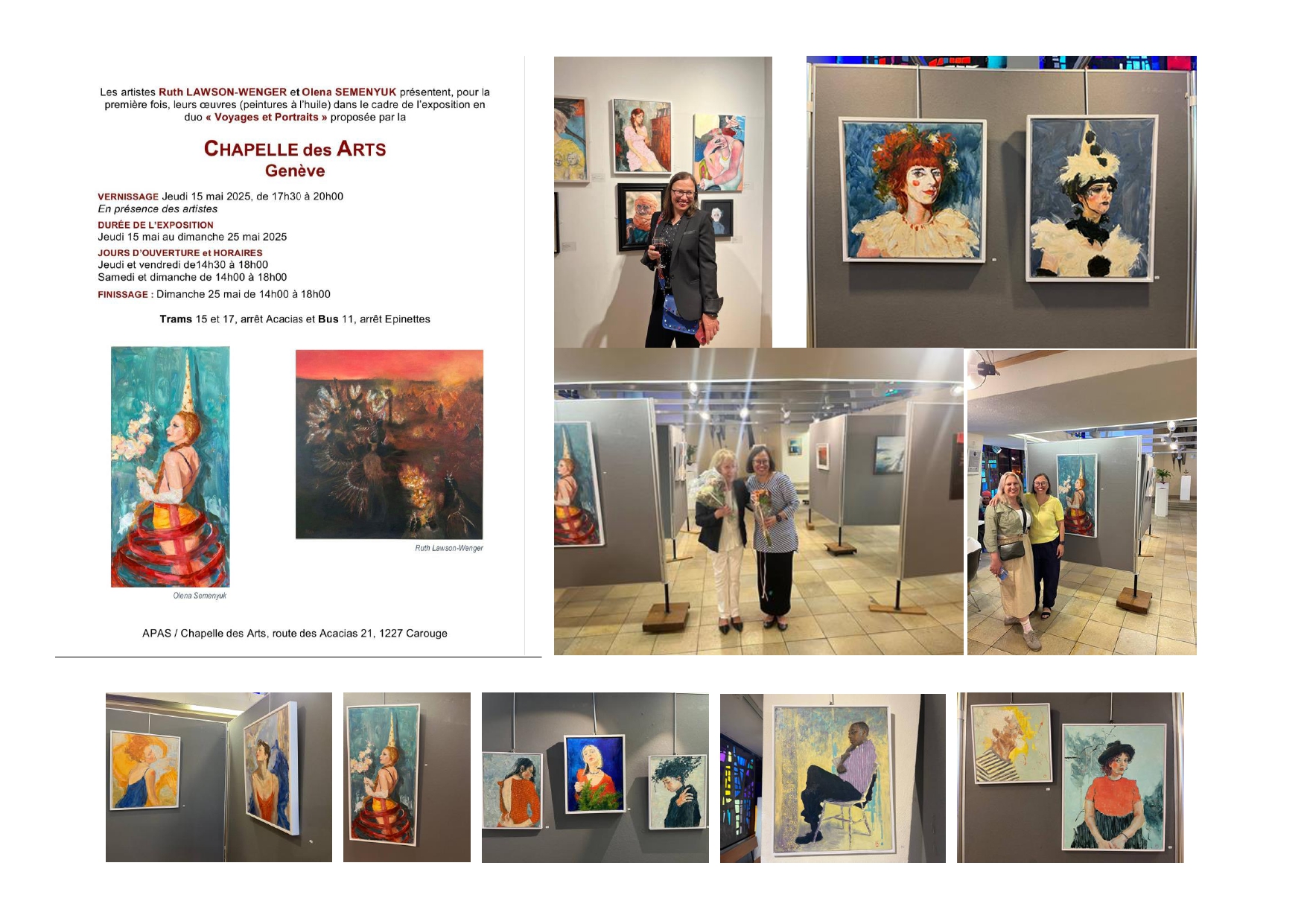 • 15 травня 2025 року відкрилась дуетна виставки «Подорожі та портрети» за участі Олена СЕМЕНЮК, здобувачки вищої освіти 2 курсу ОПП «Станкового живопису» у галереєю CHAPELLE des ARTS Route des Acacias 21, 1227 Carouge. Швейцарія, Женева.