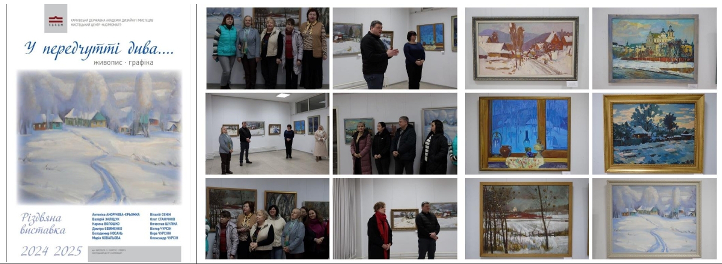 23 грудня 2024 року в академічному мистецькому просторі Галерея відкрилася різдвяна виставка «У передчутті дива…» В експозиції представлені полотна викладачів із зимовими мотивами і святковими образами. Ключова ідея кожної картини полягає у передачі моменту відчуття дива. Автори, що були присутні на відкритті, розповіли про власне творче натхнення. Виставка триватиме до середени січня, запрошуючи всіх охочих поринути у світ мистецтва, пронизаного зимовим настроєм.
