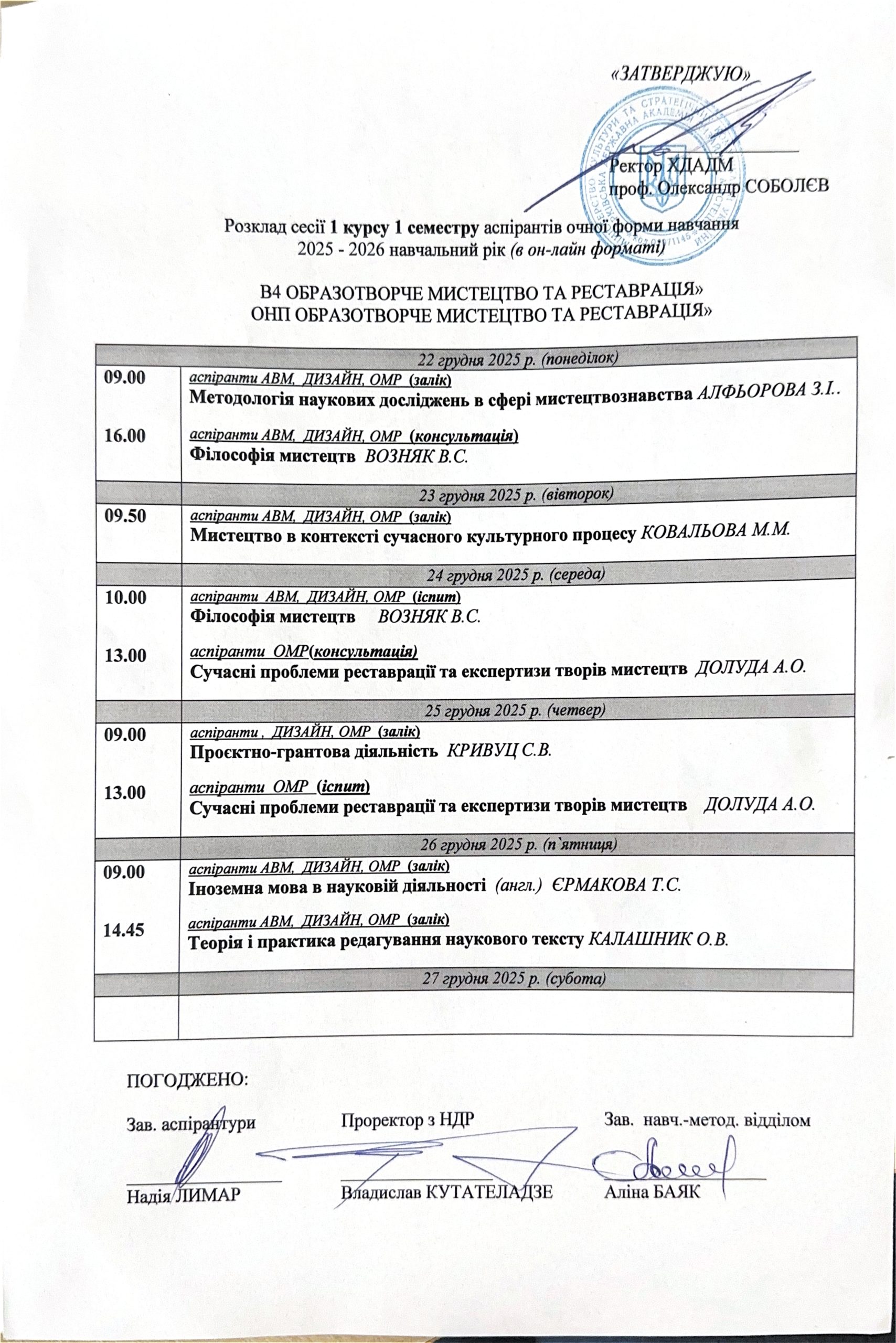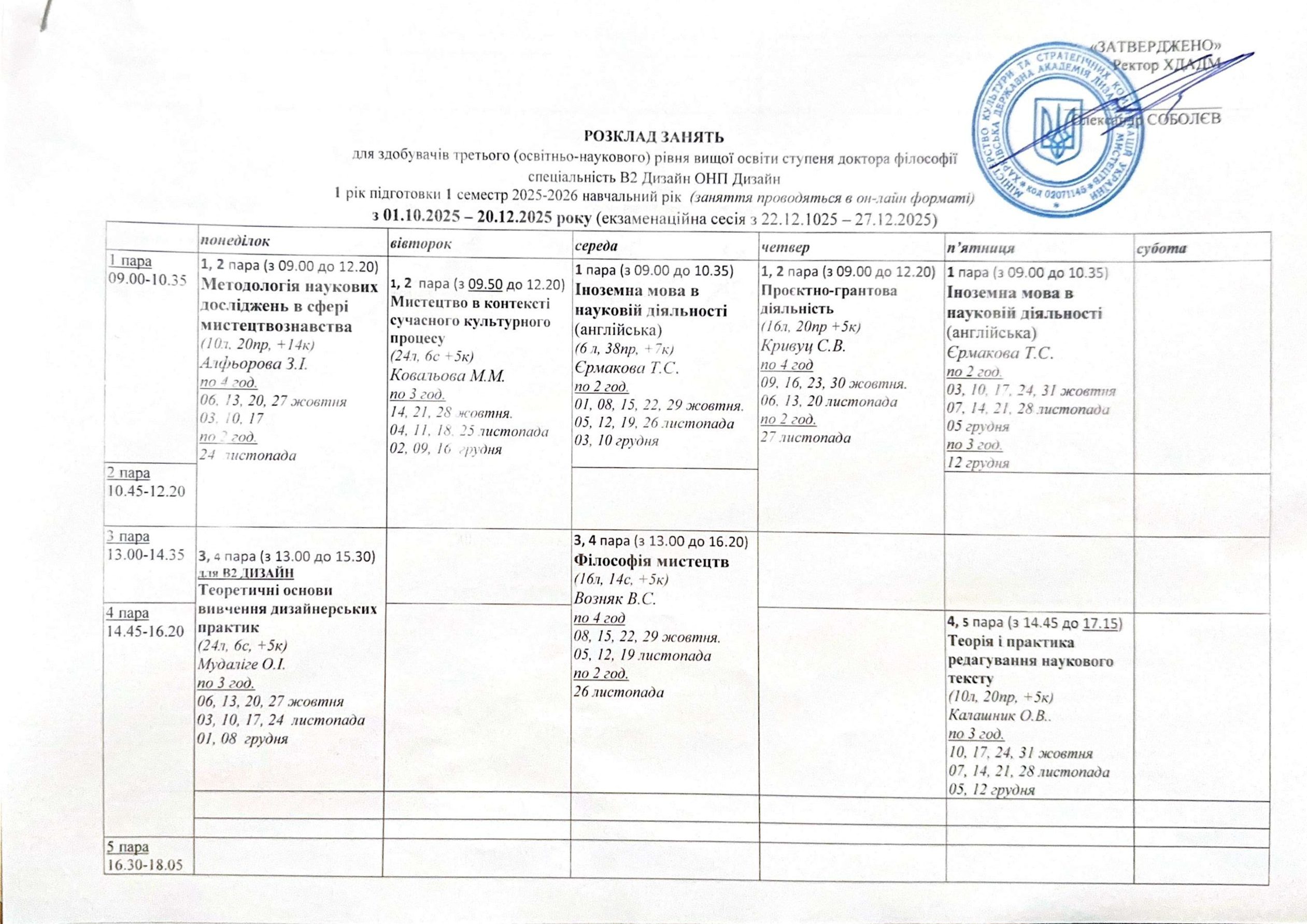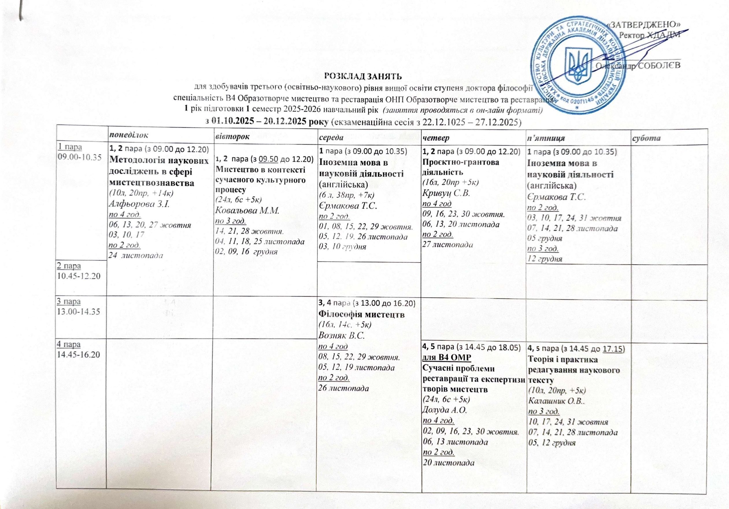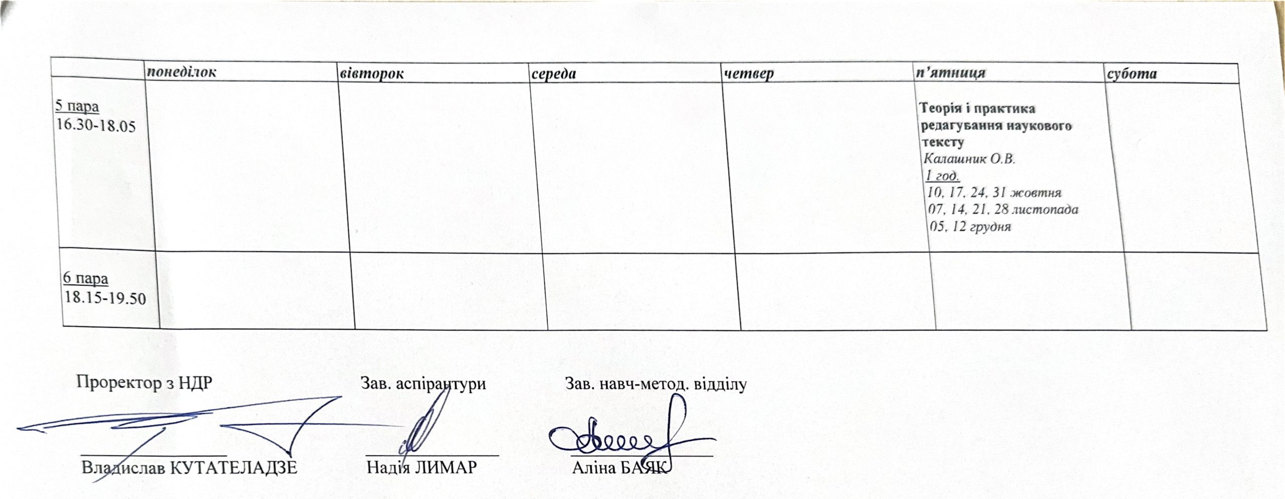 Розклад занять аспірантів