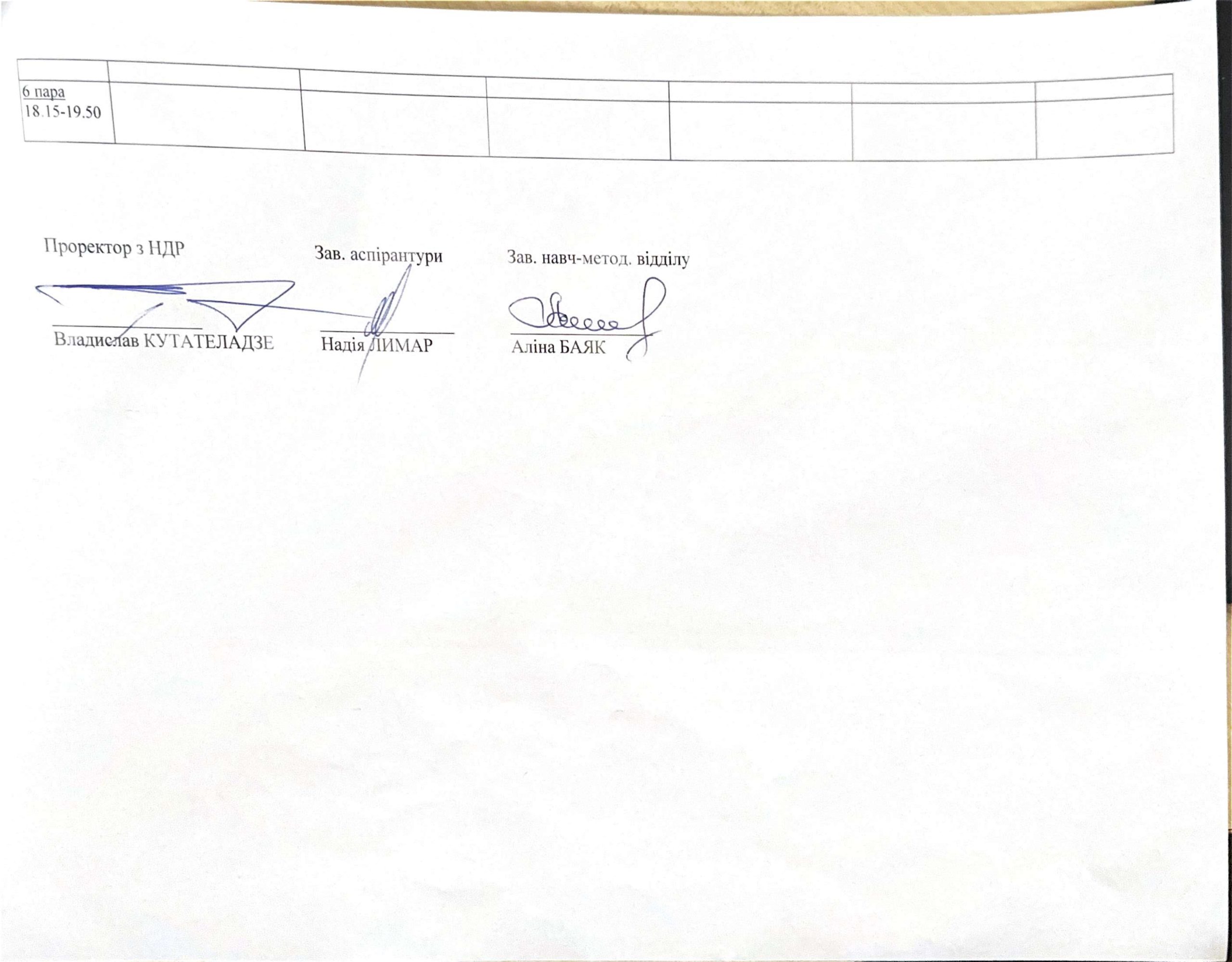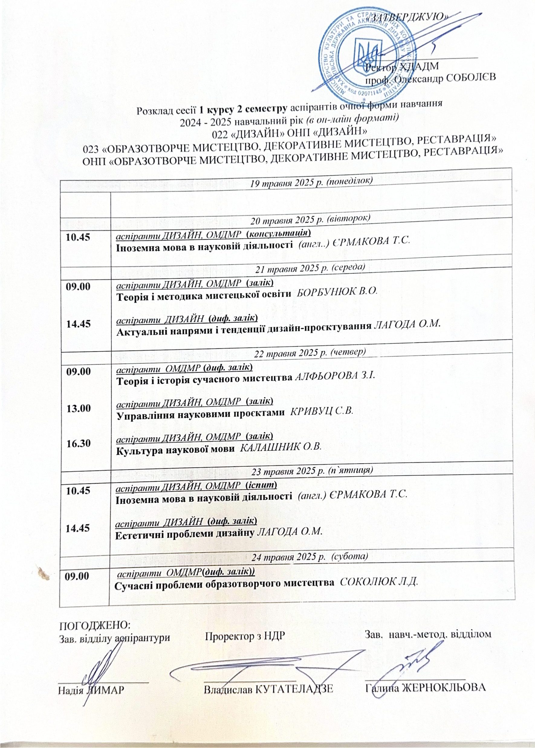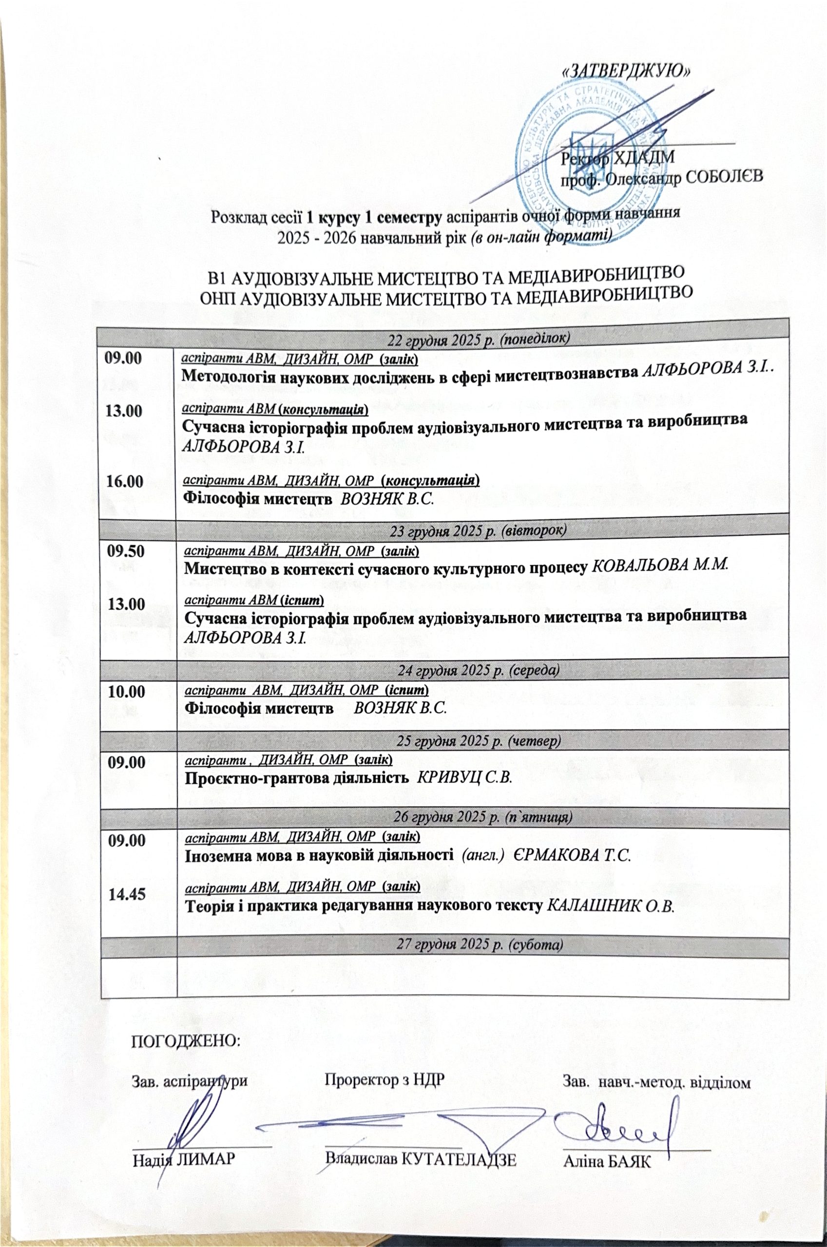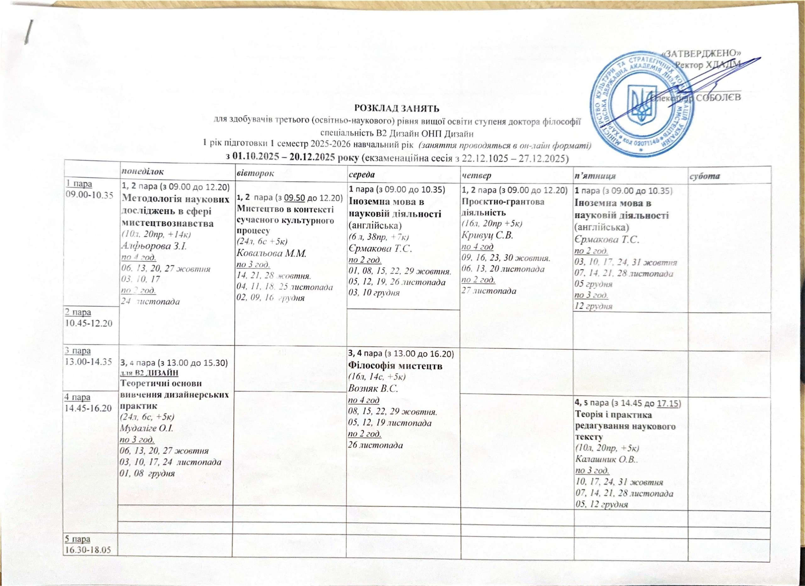 Розклад занять аспірантів