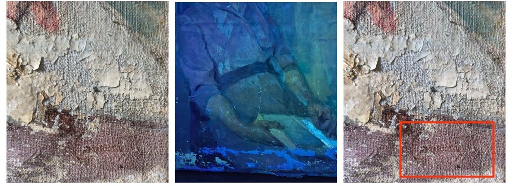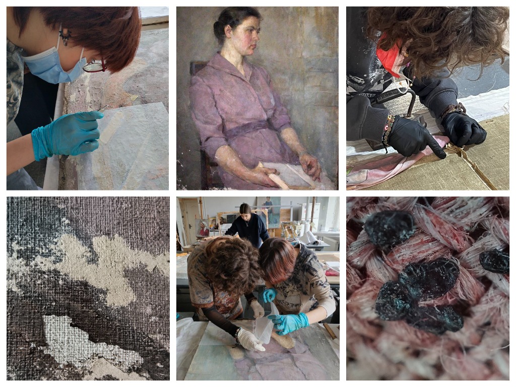 Комплексні дослідження, що проводилися під керівництвом викладачки, доктора філософії Наталії АНТОНЕНКОВОЇ виявили сліди попередніх реставраційних втручань: дубльовані крайки, поновлення ґрунту поверх авторського живопису, що не відповідало оригінальному складу (це підтверджено мікрохімічним аналізом), а також локальні поновлення фарбового шару, виявлені під час УФ-дослідження.