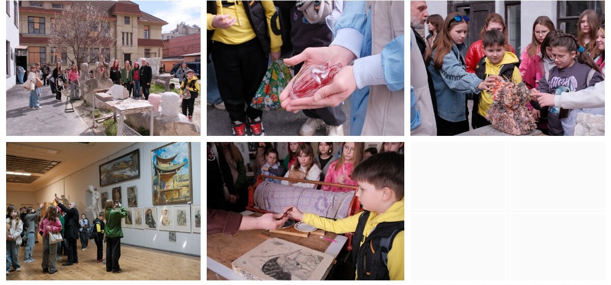 У межах програми школярі відвідали факультет образотворчого мистецтва, де навчальний майстер Констянтин КРУШЕДОЛЬСЬКИЙ провів змістовну екскурсію майстернями графіки. Також гості ознайомилися із роботою скульптурної секції, побачили процес створення пластичних форм із різних матеріалів. Методистка Мистецького центру «HudpromArt» Наталія ПОСТЕЛЬГА представила виставкові простори академії. Учасники ознайомилися з експозицією Антоніни АНОРІЧЕВОЇ-ЄРЬОМКИ та мистецьким проєктом «ПО КОЛУ», що об’єднав роботи з методичних архівів кафедр, твори студентів та викладачів освітніх програм «Графіка» і «Фотомистецтво та візуальні практики». Важливою частиною візиту стала лекція викладача секції скульптури Олександра РІДНОГО, присвячена сучасним скульптурним практикам і роботі зі змістом у мистецтві.