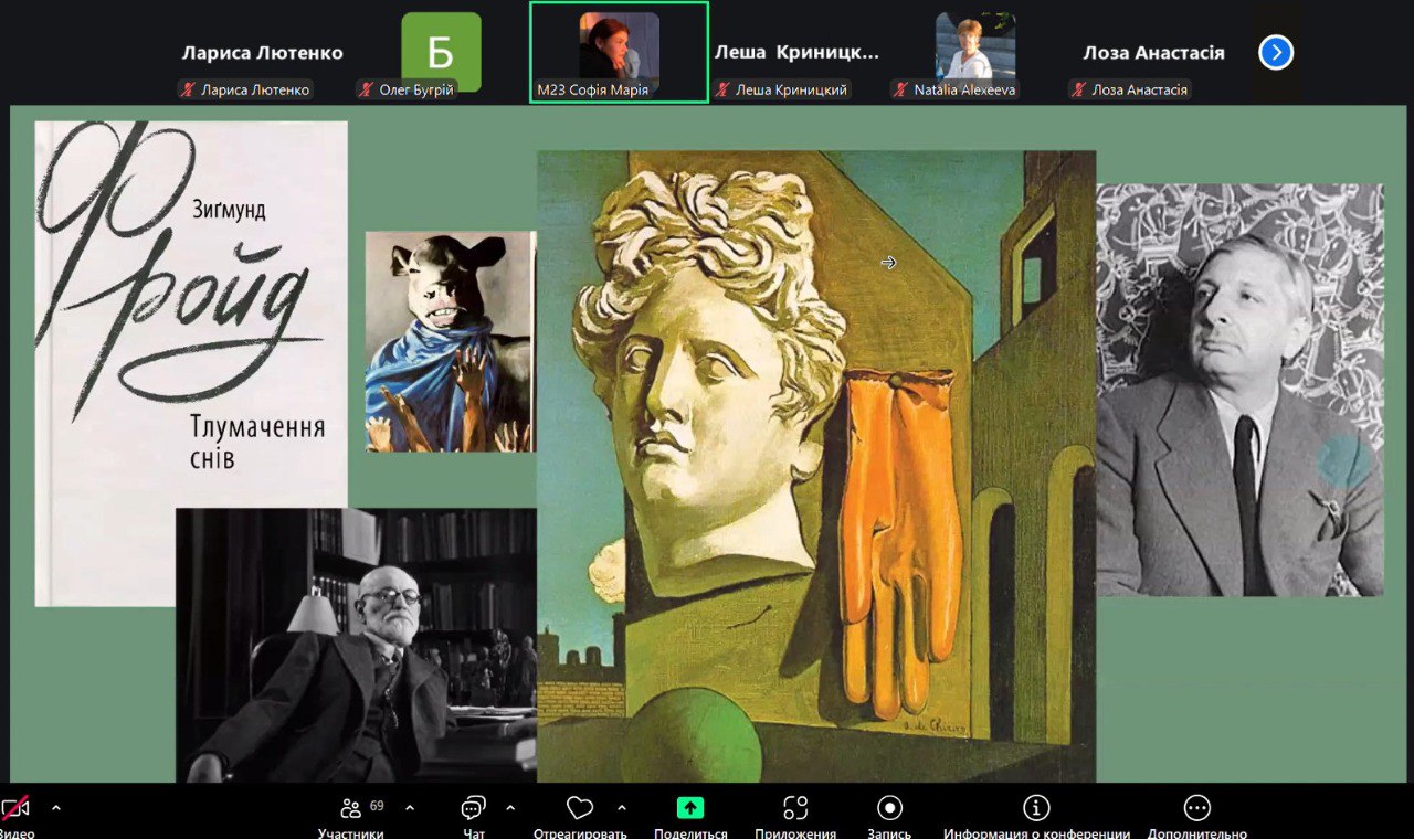 Лекцію провела студентка 3 курсу кафедри «Теорії і історії мистецтв» Софія Марія БОНДАР, яка представила ґрунтовний та водночас зрозумілий огляд сюрреалістичного мистецтва.