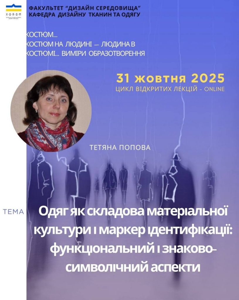 Запрошуємо на відкриту онлайн лекцію з циклу, присвяченого ювілею створення кафедри «Дизайн тканин та одягу».